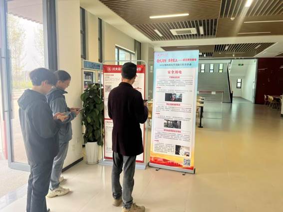 现场演练前,保卫部(处)和眉山校区管委会在校区食堂、宿舍、办公等场所,通过展板和显示屏等形式进行了消防安全和应急处置等相关知识的宣传。